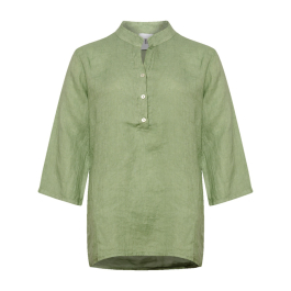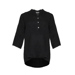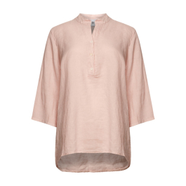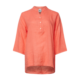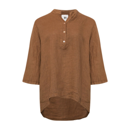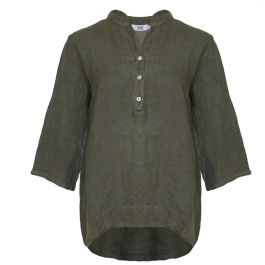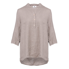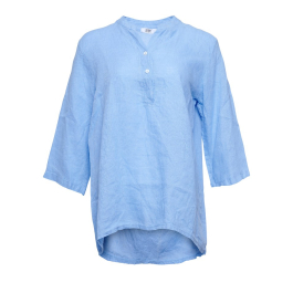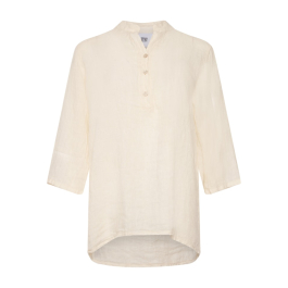 Den samme lækre fineste hørkvalitet. Skjorten har fortsat de kendte trekvartærmer og samme gode pasform. Skjorten har som bekendt en lille V-hals foran med knapper.