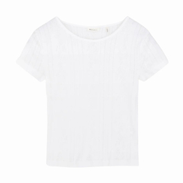 T-shirten er designet med korte cap sleeves og en rund udskæring, som skaber en enkel og tidløs silhuet. Den bløde bomuldskvalitet føles behagelig mod huden, og den tætsiddende pasform giver et flatterende og feminint look.