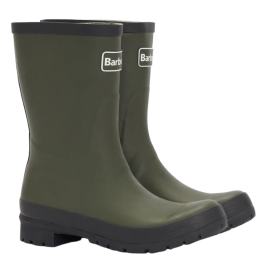 BARBOUR Banbury Wellington Boots i Olive er en funktionel og moderne mellem længde gummistøvle med et stilrent, minimalistisk udtryk. Den olivengrønne tone giver et klassisk Barbour look, mens kontrastdetaljerne i sort gør støvlen ekstra skarp og nem at style med både outdoor og hverdagsgarderoben.