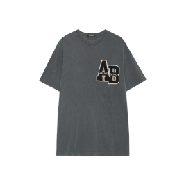 Beth Mini Dress fra Anine Bing er en boxy T-shirtkjole fremstillet i vasket sort farve, og har trykket "AB, Anine Bing" på venstre bryst i sort og creme.