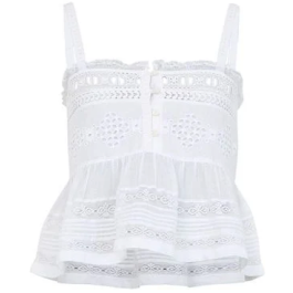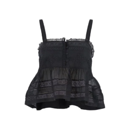 Super fin top fra Isabel Marant i sort. toppen er med små stropper med den fineste detalje af broderi. over brystet har den 4 knapper ned, hvorefter den strutter på en fin og elegant måde.