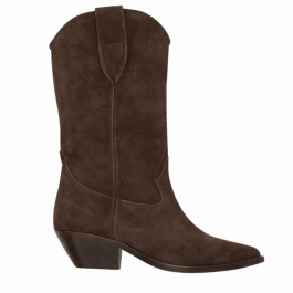 Støvlerne har højt skaft i blødt ruskind med dekorative rundede yokes, praktiske pull tabs og en klassisk spids tå. Den laminerede cubanske hæl på 4 cm giver et elegant løft, samtidig med at komforten bevares hele dagen. Indersål, ydersål og foring er udført i blødt læder, hvilket sikrer en eksklusiv finish og god pasform.