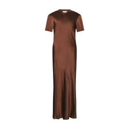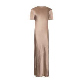 Den flotte støvede rose-farve giver et stilfuldt og moderne udtryk, perfekt til både hverdag og festlige lejligheder. Med sin lange silhuet og enkle design kan kjolen nemt styles op eller ned afhængigt af anledningen.