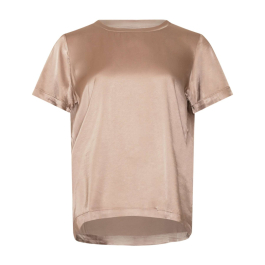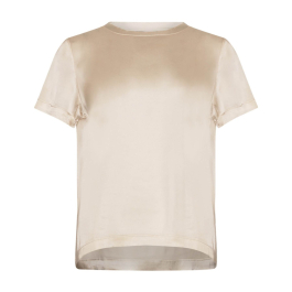 Den klassiske off-white farve gør den nem at style med alt fra jeans og shorts til nederdele og løse bukser. Med en afslappet pasform og rund halsudskæring er denne T-shirt en uundværlig del af enhver garderobe.