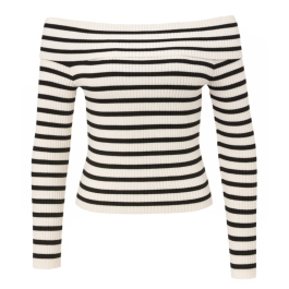 Filna Top fra Opal Studio er en elegant og alsidig langærmet off‑shoulder top, designet i en klassisk sort/off‑white stribet nuance. Toppen fremhæver skuldrene med sin fladeudskæring og kombinerer feminin lækkerhed med afslappet komfort – enkel, elegant og let at style på tværs af sæsoner og begivenheder.