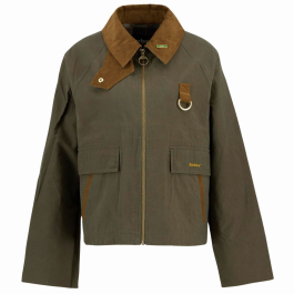 Designet er kendetegnet ved den klassiske half-moon fløjlskrave, trykknap-lukkede lommeklapper med sideindgang samt fine fløjlsdetaljer, der fremhæver Barbours signaturlook. En dekorativ D-ring på brystet og den traditionelle throat guard fuldender jakken med funktionelle og autentiske detaljer.
