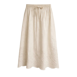Julia Skirt i Butter Cream er en let og elegant nederdel fra Tiffany Clothing med et blødt og sommerligt udtryk. Nederdelen er udført i et luftigt materiale med fine broderede detaljer, som giver et feminint og eksklusivt look.