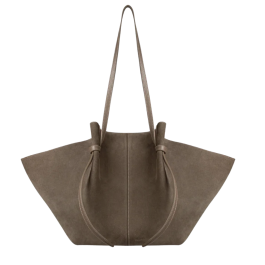 Oplev tidløs luksus med Yuzefi Large Mochi Tote i farven Taupe. Denne rummelige taske er håndlavet i Spanien af LWG-certificeret italiensk pebble-grained kalvelæder, der er kendetegnet ved sin holdbare struktur og bløde finish. Designet er inspireret af organiske former og fremhæves af foldede detaljer, bløde kurver og Yuzefis ikoniske knudedetaljer – et skulpturelt og moderne statement.