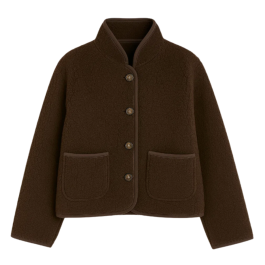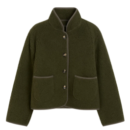 En hyggelig teddyjakke med cardigan-silhuet i den klassiske farvekombination ecru og sorte kontrast detaljer — perfekt som det varme ydre lag med masser af blødhed og karakter. Fleecestoffet med høj luv giver følelsen af hygge uden at blive for tung.