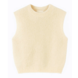 Mana Mohair Vest i Sand fra Opal Studio præsenterer en varm, lys beige tone med rund hals og ribdetaljer, som giver vesten et diskret og sofistikeret udtryk.