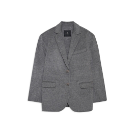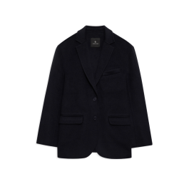 Quinn Blazer – Black Cashmere Blend er en luksuriøs, unconstructed blazer i kraftigt, dobbeltsidet uld- og cashmere-blend. Den har en oversized, vintage-inspireret silhuet med klassisk revers, to-knaps lukning og let polstrede skuldre. Den slanke konstruktion, kombineret med en blød, feminine drapering, gør den perfekt til alsidige looks – fra business til afslappede weekendoutfits