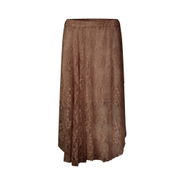 Selmo Skirt – Mocha Camel er en feminin midi-nederdel i sart hvid blonde med floral broderi og en let transparent finish. Nederdelen har en løs, flydende pasform og elastik i taljen, som kan bæres højt eller lavt alt efter din ønskede silhuet. Under blonderne sidder en kort inderskørt for diskret dækning, mens den buede nederkant og rummelige form giver et romantisk og elegant look.